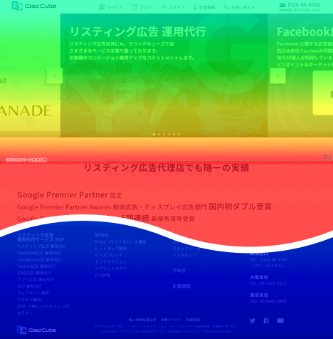 ユーザーの滞在時間によって色合いが変わる( 滞在時間が長いほど赤く、短いほど青く表示される) ため、直感的にサイトの状況を把握することが可能です。