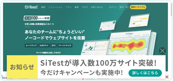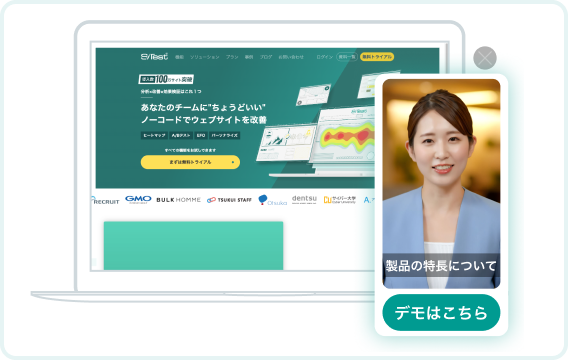 任意の画像を、指定したページにリンク付きのポップアップとして表示させます。 離脱率が高いページ位置にサイト訪問者が到達したタイミングで特別なオファーを表示させたり、ECサイトの商品ページに一定時間滞在したタイミングで、期間限定のキャンペーンなどの告知を表示させれば、購買意欲の高いサイト訪問者の行動を後押しできるので、コンバージョンの増加が期待できます。