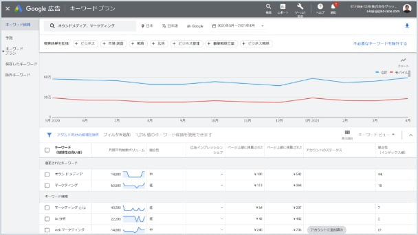 Google キーワードプランナーなどのツールを活用して、設定したターゲットに対して最適なキーワードを選定します。