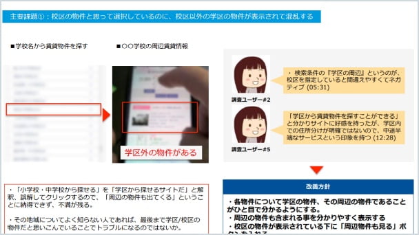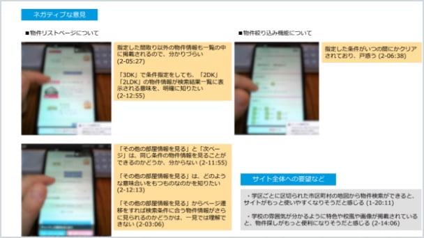 利用中・利用後の調査モニターの行動・言動を、専門家が分析して問題点を洗い出します。