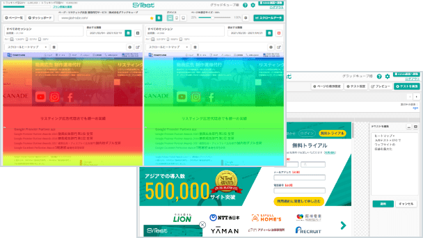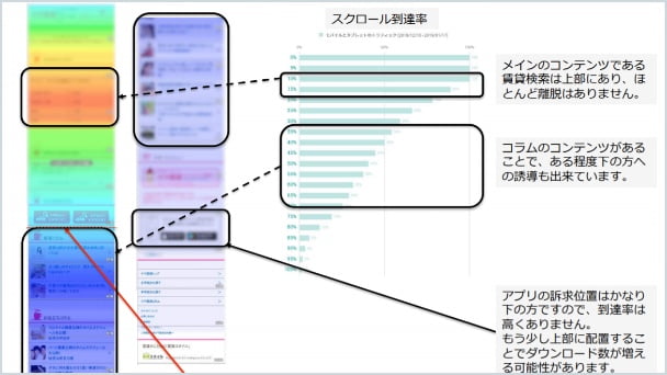 ヒートマップ解析で、離脱の多いページ位置・滞在時間の長いページ位置などを分析します。