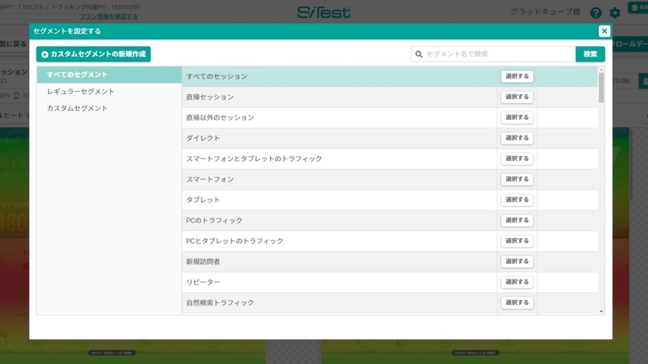 サイト訪問者の属性、アクセス環境、テストパターンなどの豊富なセグメントで、ヒートマップや定量データを比較できます。