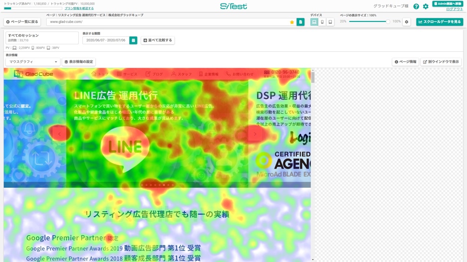 サイト訪問者のマウスの動きをサーモグラフィのように表示する機能です。