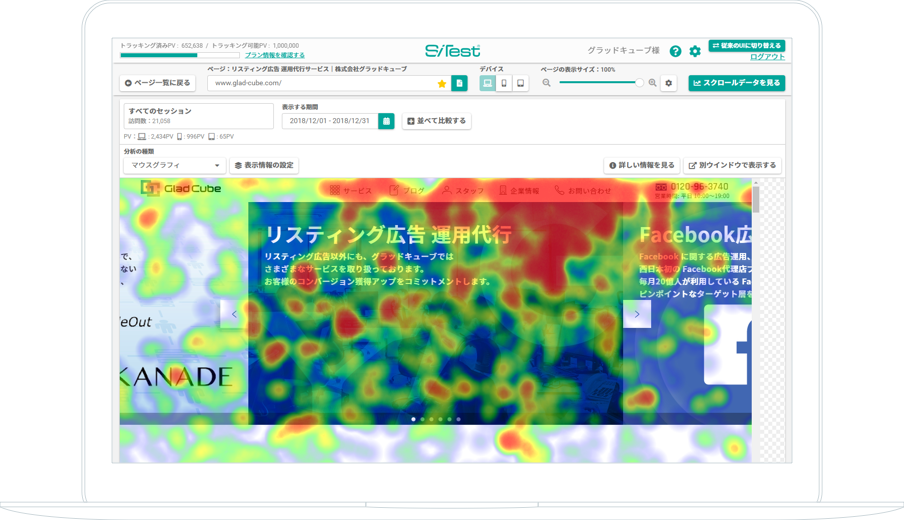 例えば、直帰ユーザーとそれ以外のユーザーを比較して、動きの違いを把握することができたり、リニューアル前後の結果が可視化(世界初)されるため、自信を持って改善に取り組めます。